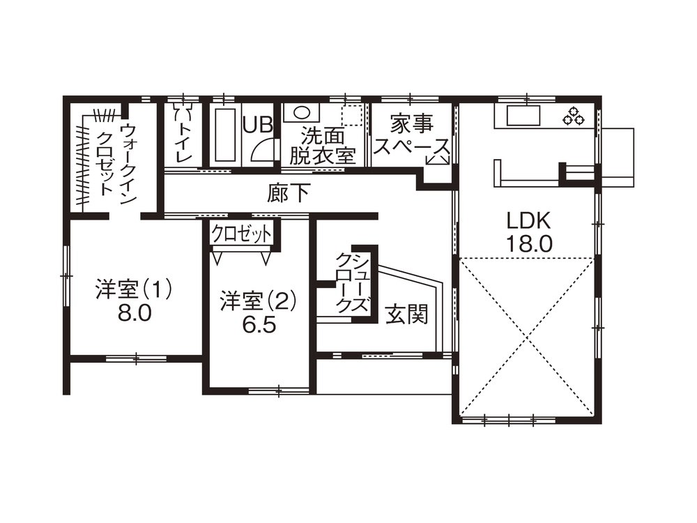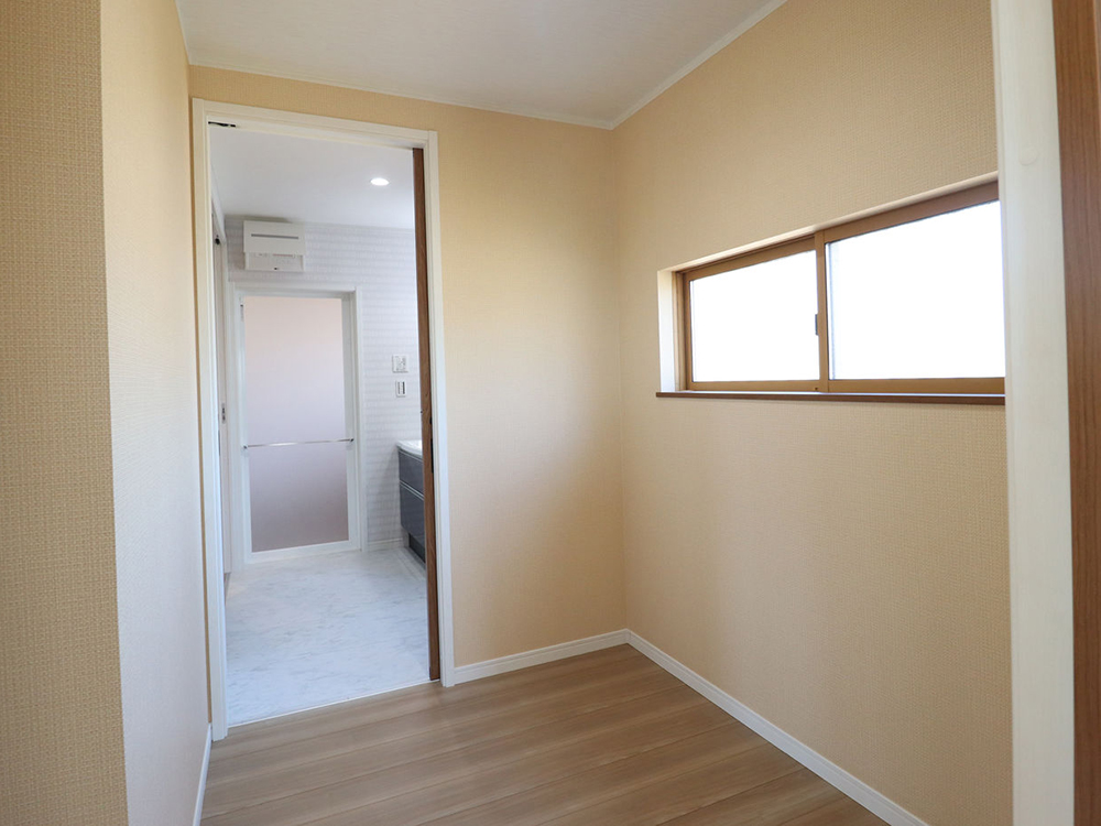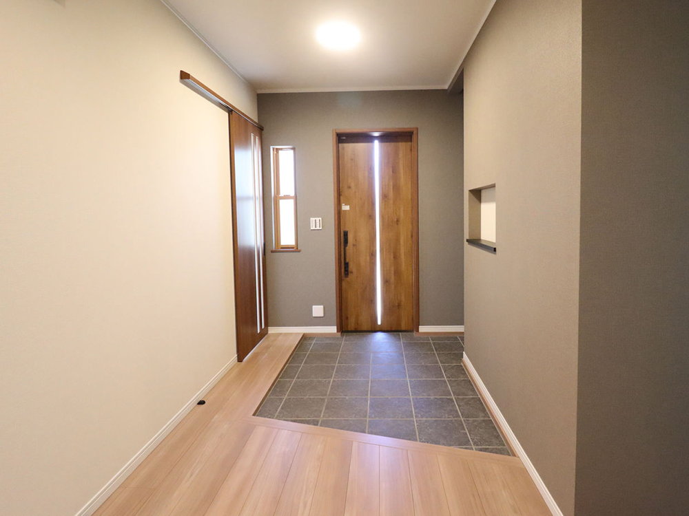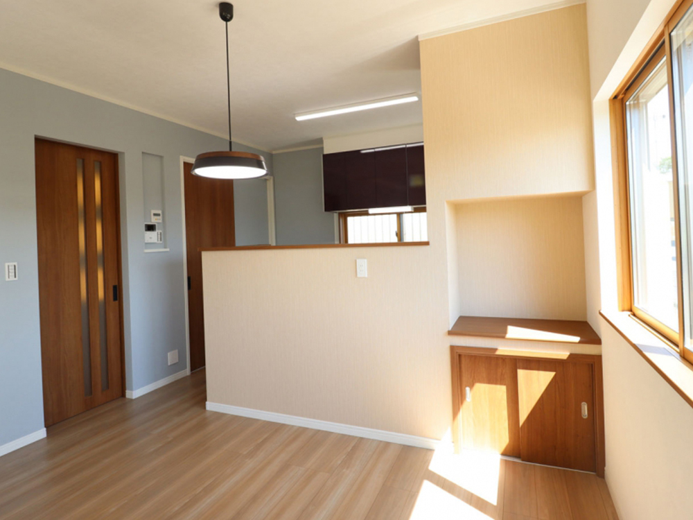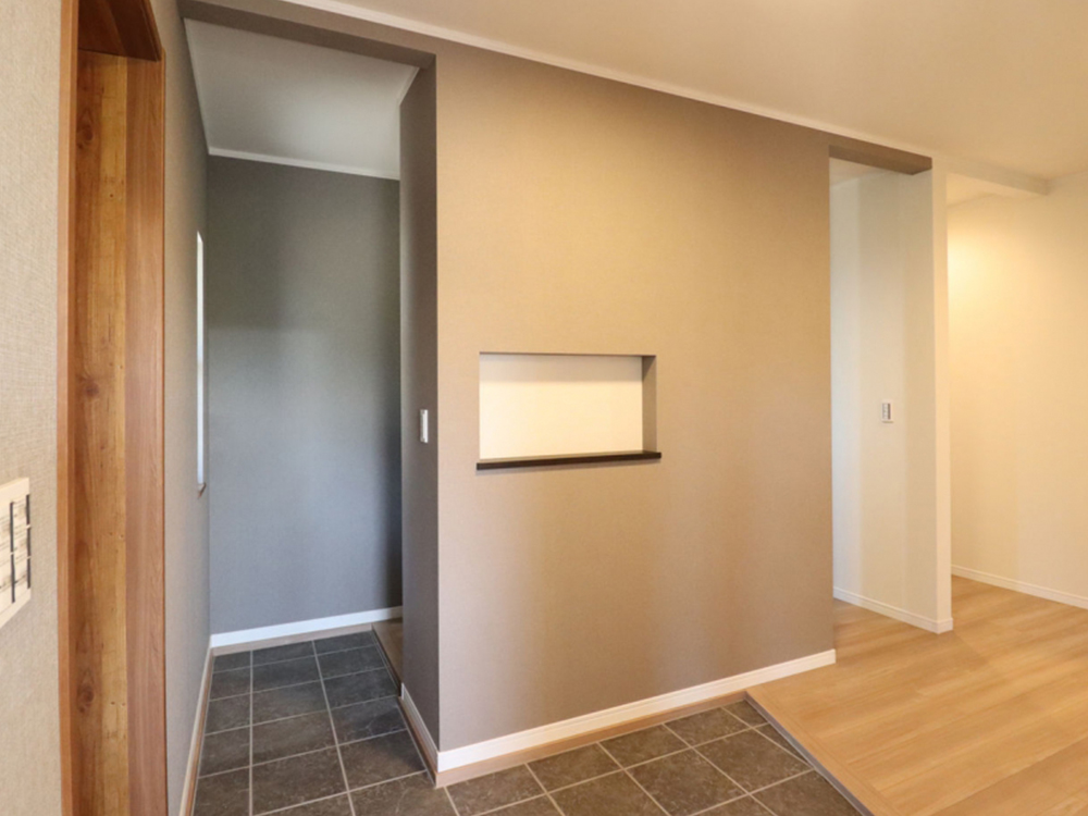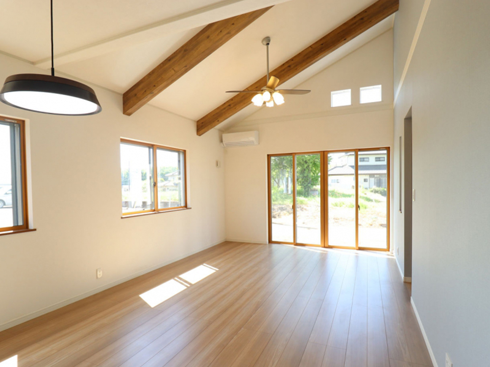 段差の少ないセミバリアフリーの採用や、廊下やトイレなどの幅を広く設計するなど、これから先の暮らしに配慮した住まいとなっている。 リビング上部には屋根形状を活かして勾配天井を採用。天井高を確保し、平屋ながらも開放的な空間を実現した。「以前の住まいから習慣になっている暮らし方に合わせた柔軟なプランニングで、自分に合った住み心地の良い住まいになりました」とIさんは笑顔で家づくりを振り返る。