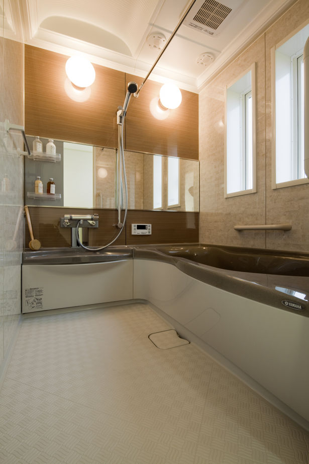 要塞のように横張りサイディングの服をまとった特徴の外観。内観は、白を基調色にしてまとめて、ウッドデッキや人造大理石の浴槽など、随所にこだわりが盛り込まれている。しかも、長期優良住宅仕様である。