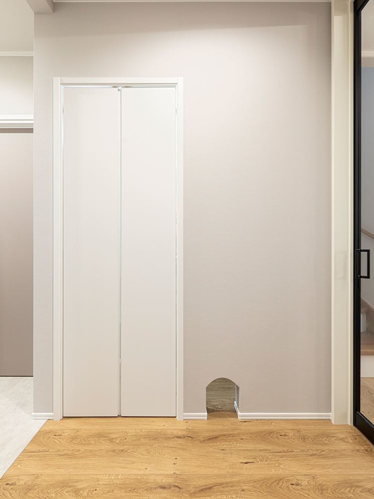 毎日を楽しむアイデアも見逃せない。夏にはプール遊びができるほどの広いバルコニーは、半透明の手すりで視線を程よく遮りながら、外に広がりを感じられる設計に。さらに階段下を利用して愛猫のための専用部屋やキャットドアを設け、自由に行き来できる工夫をプラスした。